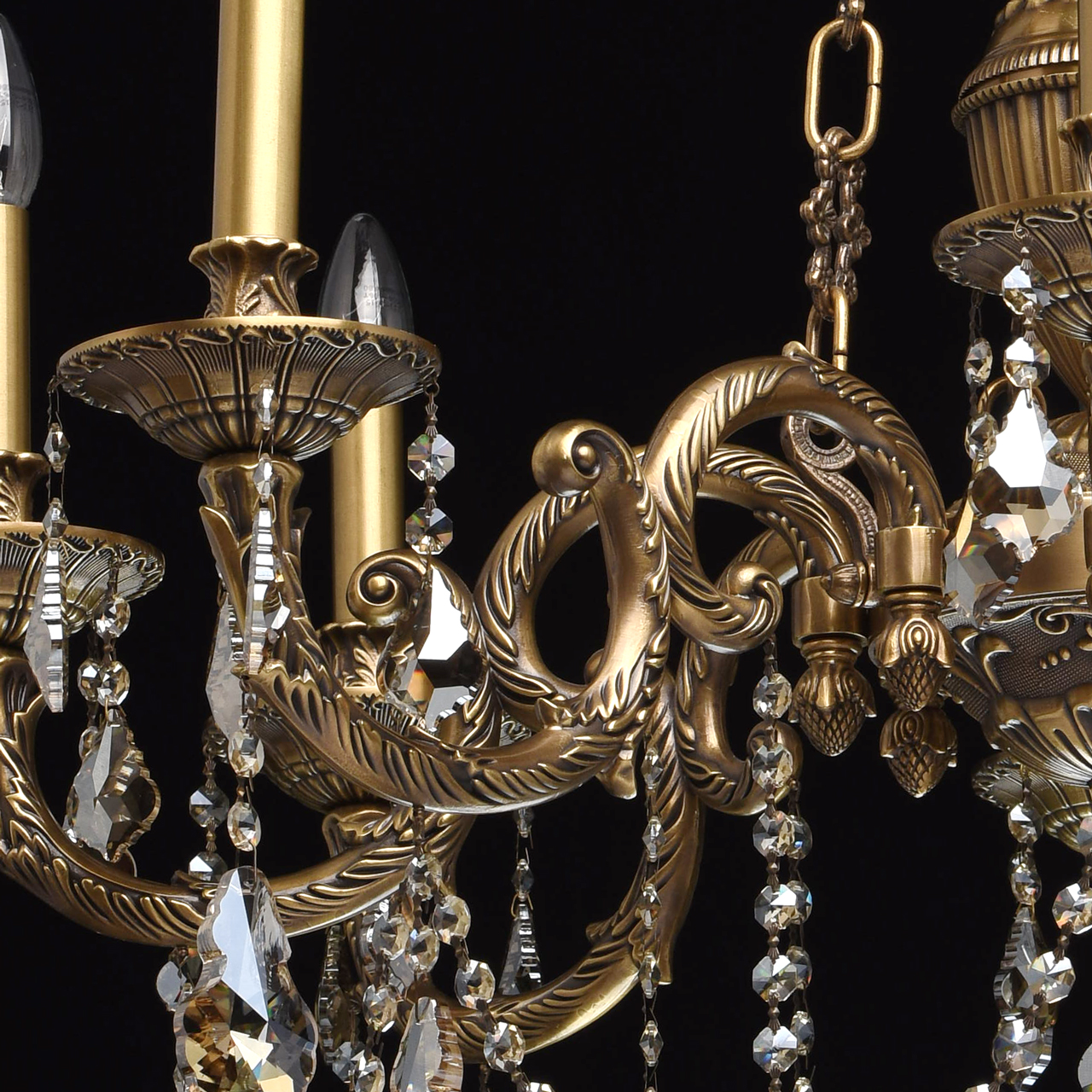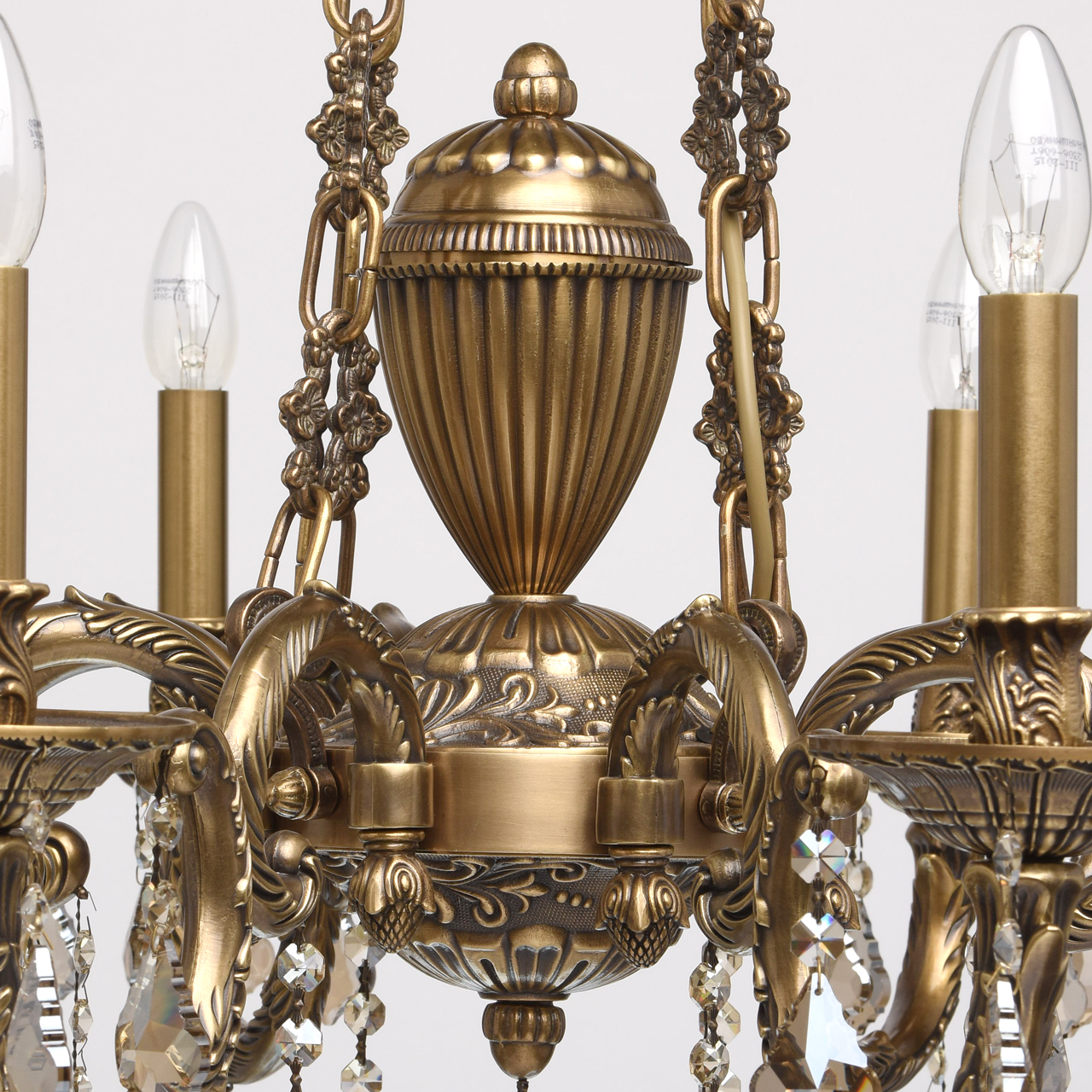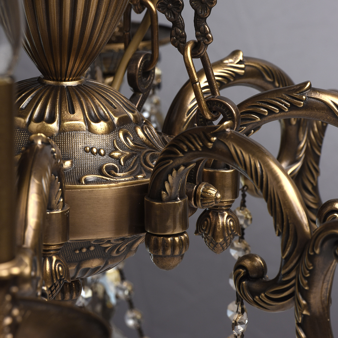 Żyrandol 8-ramienny z mosiądzu i kryształy z topazu CHIARO Classic. Klasyczny żyrandol Gabriel wyróżnia się wysokim poziomem wydajności i materiałami o specjalnej jakości. Podstawa w kolorze antycznego brązu wykonana jest z mosiądzu, dzięki czemu mogła ozdobić lampę licznymi detalami, zagięciami, ornamentami! Wiszący łańcuch ma ciekawe, wzorzyste ogniwa charakterystyczne dla wnętrz pałacowych. Szlachetne, kryształowe wisiorki z galwanizowaną obróbką w kolorze topazu, dodają eleganckich akcentów wizerunkowi lampy Gabriel, gdzie światło i blask łączą się w harmonijny związek! Niezwykły design, drogi wystrój. Bardzo wysoka jakość wykonania - podstawa lampy wykonana jest z brązu, wystrój wykorzystuje wysokiej jakości kryształ. Wyjątkowa dekoracja ramion wykonana jest w formie artystycznego tłoczenia. Model prezentowany jest w kilku wariantach - może uzyskać kompleksowe oświetlenie przestrzeni. Z czasem wartość modelu wzrośnie, ponieważ przy produkcji stosowany jest niezawodny i trwały metal - brąz.
