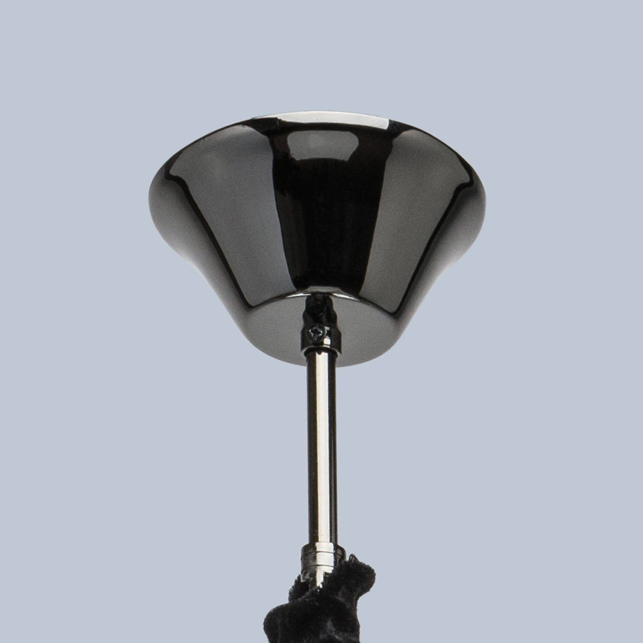 Podstawa lampy wykonana jest z metalu i ocynkowana w kolorze czarnego chromu. Lampa ozdobiona jest kwiatami wykonanymi z metalu poprzez tłoczenie i pomalowane na matowe złoto.