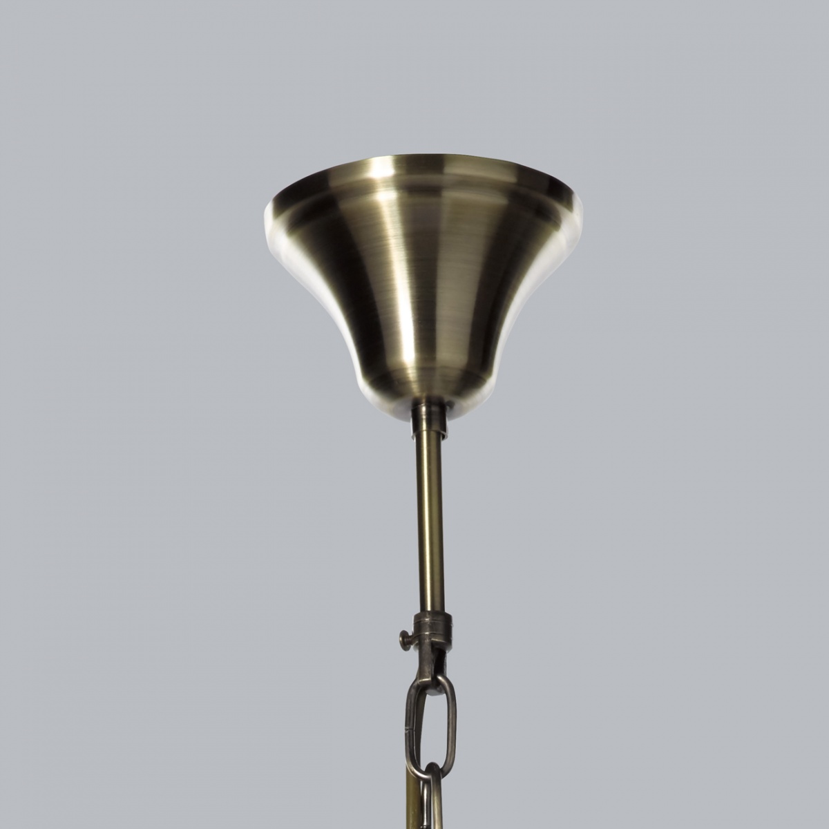 Żyrandol wykonany w stylu art-deco w kolorze postarzanego mosiądzu, który jest odpowiedni dla większości wnętrz. Dekor w postaci kryształowych elementów nadaje mu szczególnego uroku. Eleganckie, beżowe klosze z organzy pomagają stworzyć rozproszone oświetlenie w salonie. Tekstylny klosz poddany specjalnej impregnacji ułatwia pielęgnację. Lampa dostępna jest w dwóch wersjach w zależności od liczby ramion, co pozwala na dekorowanie pomieszczeń o różnych rozmiarach. Atrakcyjna cena w porównaniu z innymi lampami na rynku w tej kategorii.