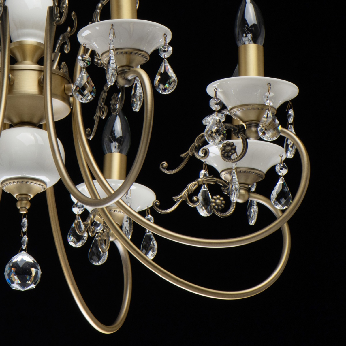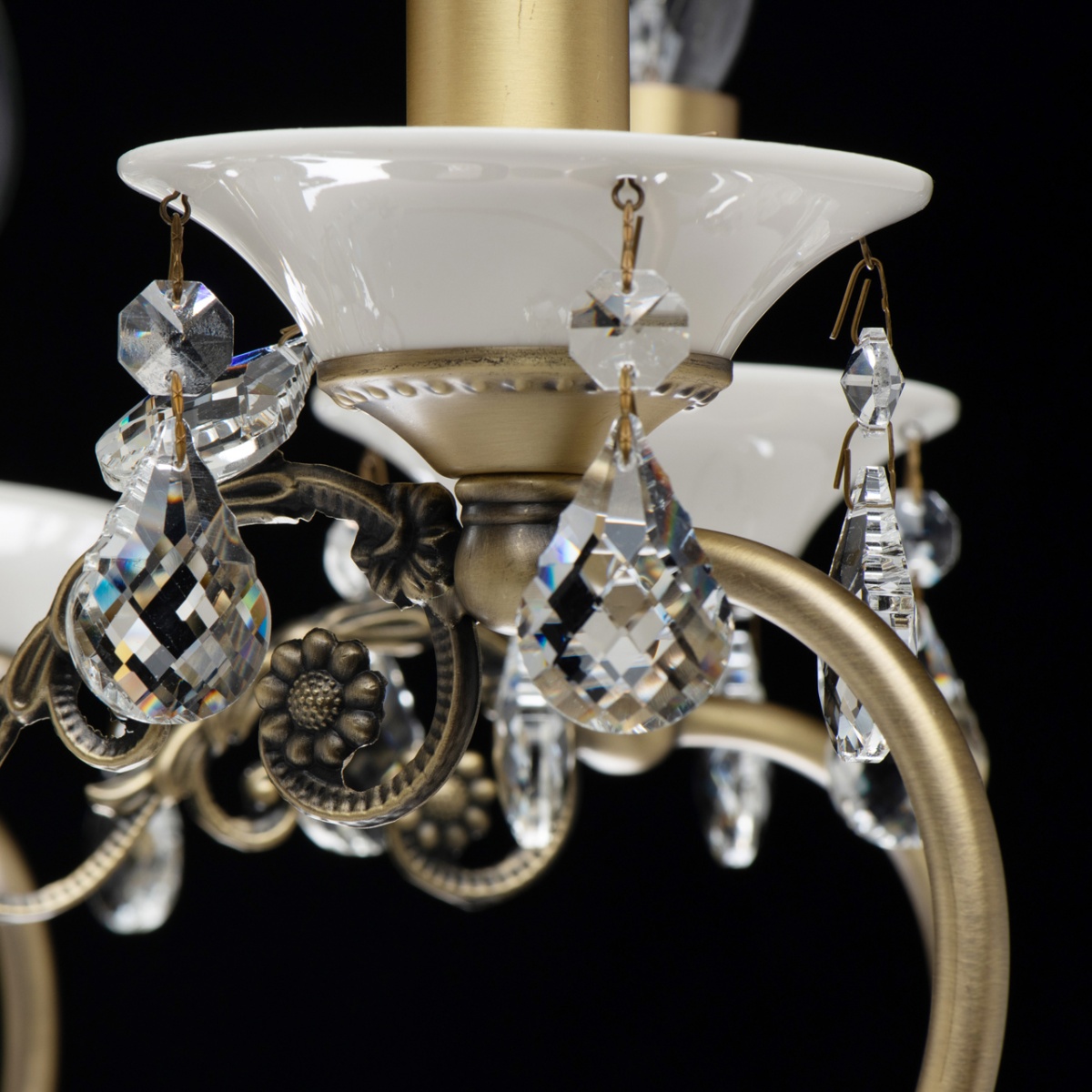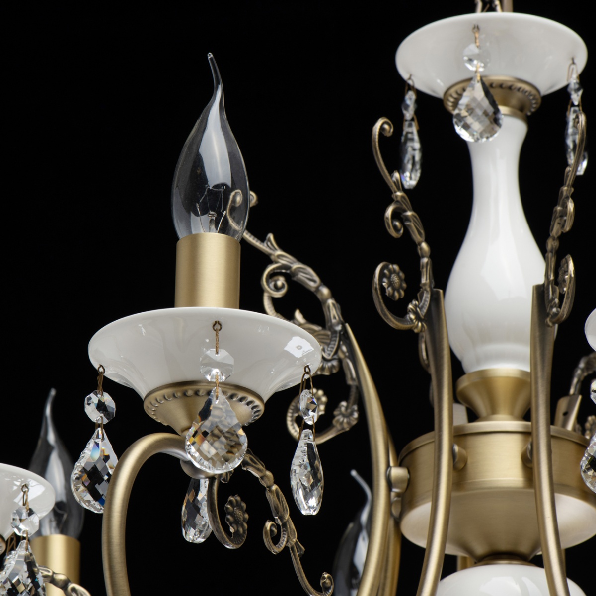 Żyrandol stylizowany - klasyczny, świeczkowy, biała ceramika MW-LIGHT Classic. Antyczny wygląd jest atrakcyjny dzięki klasycznemu wzornictwu. Połączenie naturalnej porcelany i elementów z mosiądzu. Bogata dekoracja w postaci dużego, przezroczystego kryształu. Stylizowany żyrandol przyciąga uwagę swoim wyrafinowanym, klasycznym wzornictwem.